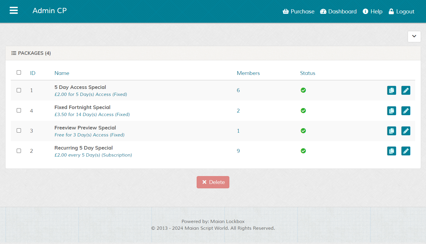 Set packages for your lockbox accounts to create different package levels and pricing.